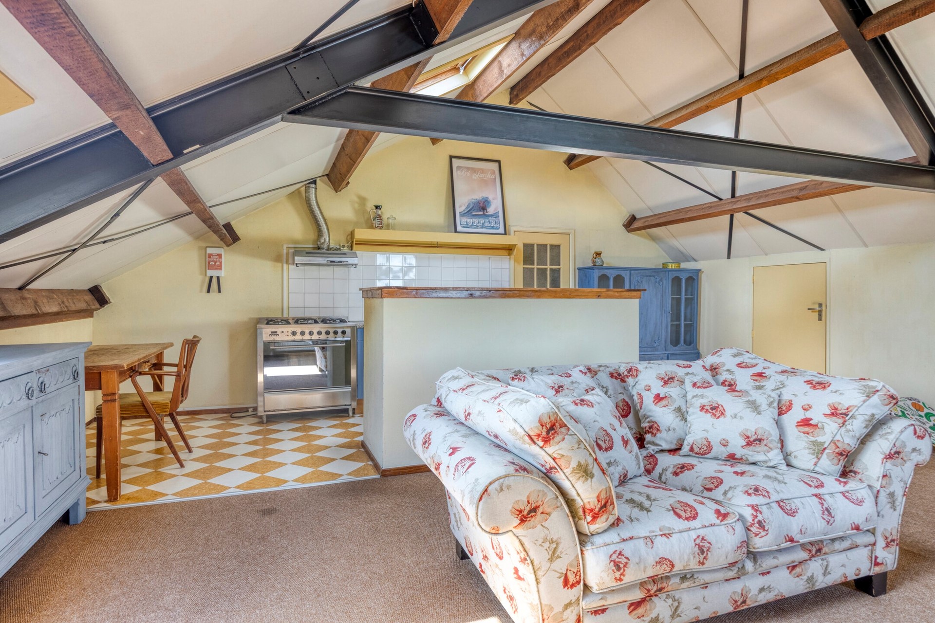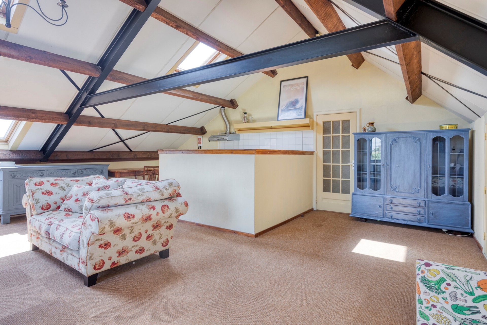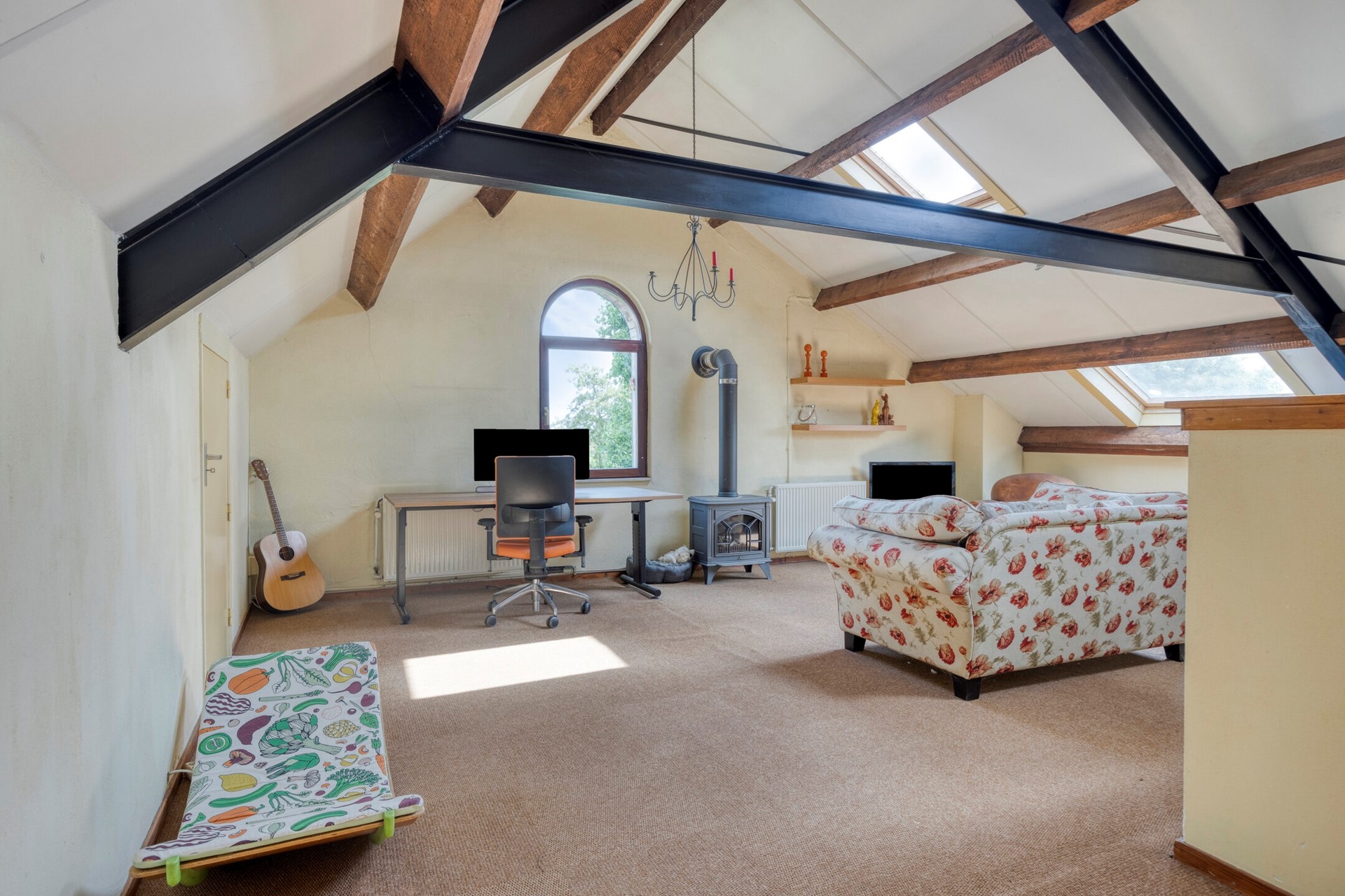 De zolderverdieping verrast met haar mogelijkheden. Deze etage is in te richten als hobbyruimte, maar leent zich ook perfect als kangoeroewoning of gastenverblijf. Je vindt hier namelijk een eigen woonkamer met open keuken (totaal bijna 44 m²!), een slaapkamer (ruim 8 m²) en een badkamer met toilet. Een ideale plek voor logees, oudere kinderen of juist om wonen en werken te combineren.