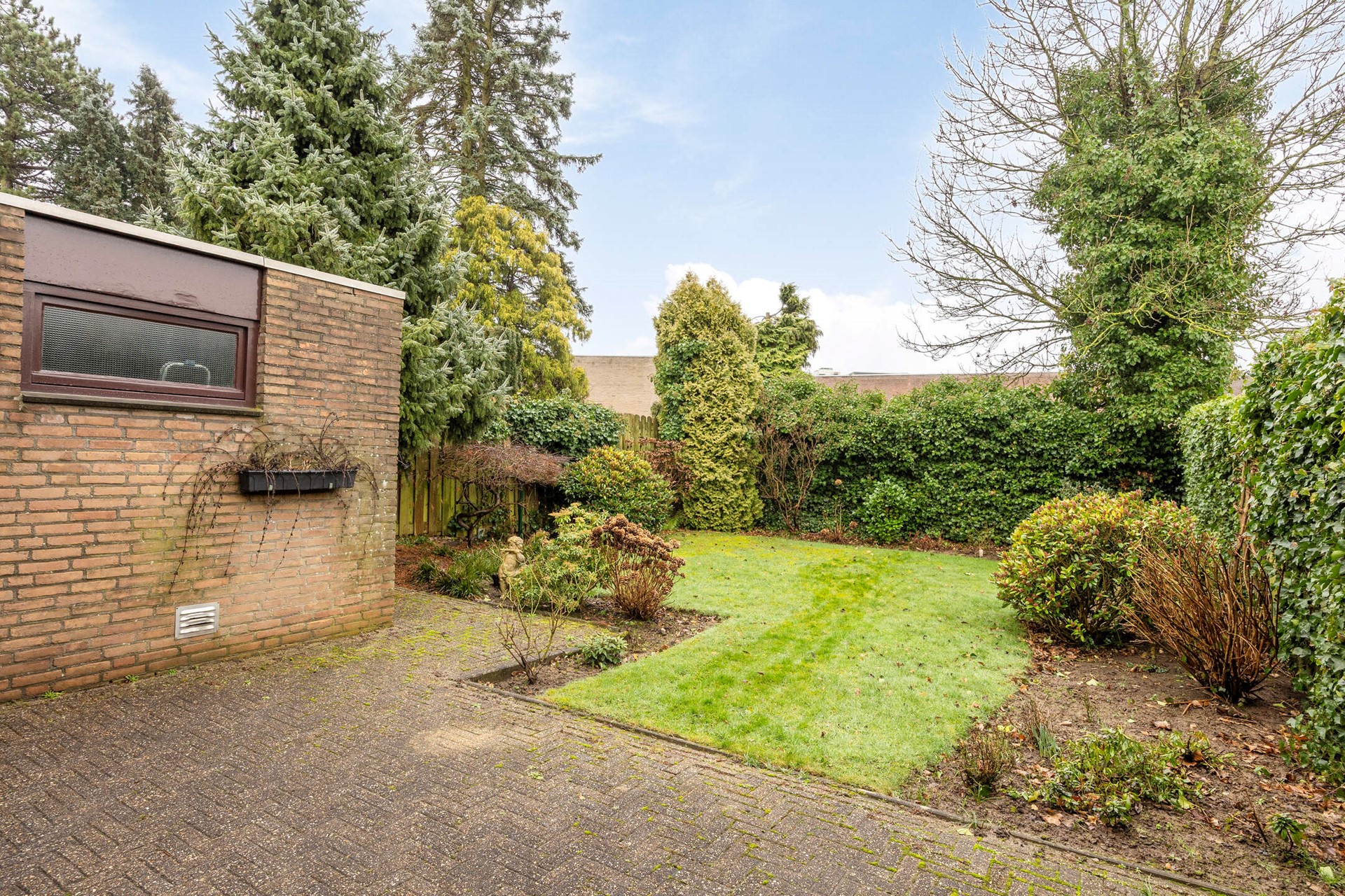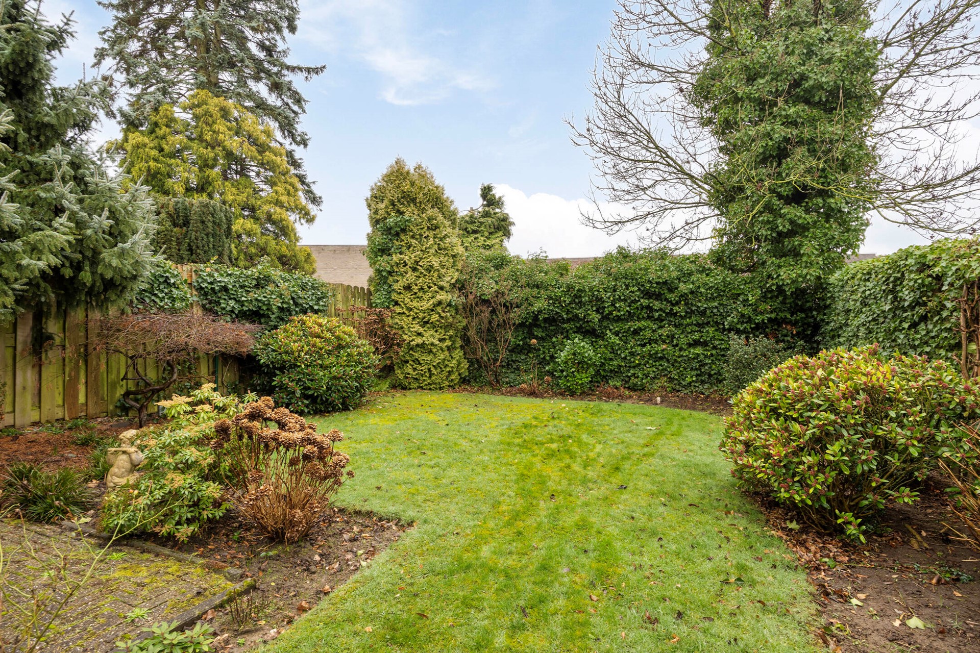 De achtertuin is groen en beschut, met een prettig terras direct aan de woning. Vanuit het terras is de ruime garage bereikbaar van circa 6,89 x 3,00 meter. Perfect voor auto, opslag of hobbyruimte.