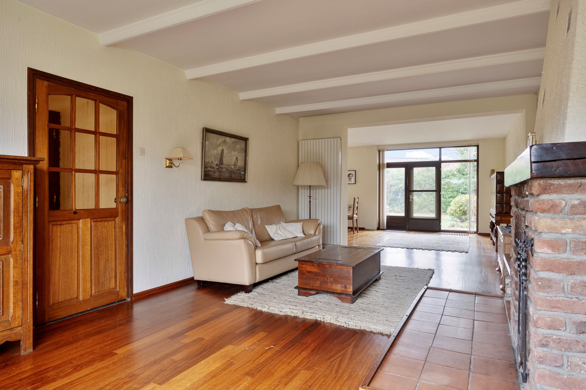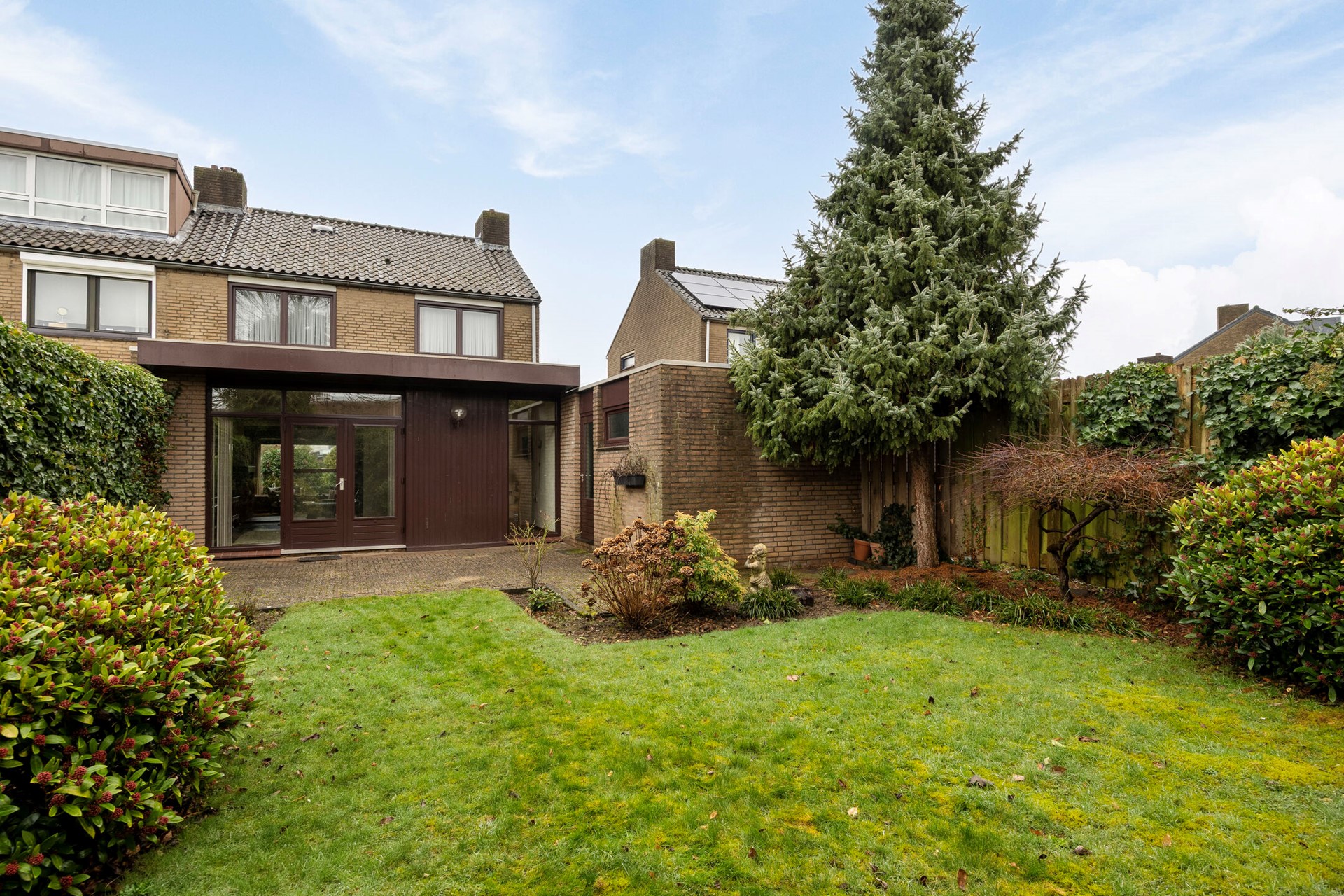 Aan de achterzijde geven openslaande deuren toegang tot het terras en de tuin. Hier ervaar je privacy en groen, een fijne plek voor lange zomerdagen met het gezin.