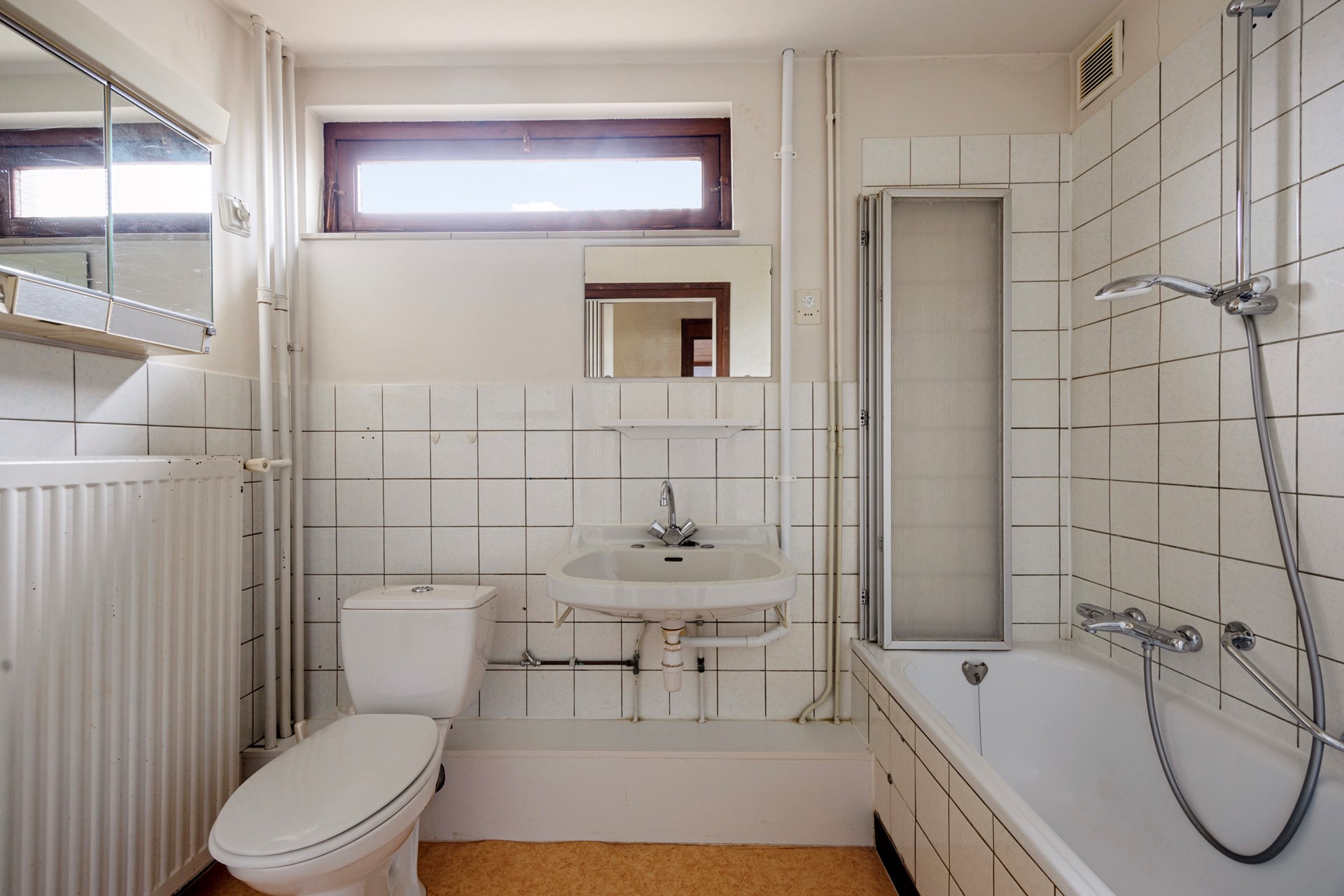 De badkamer is eenvoudig uitgevoerd met ligbad, wastafel en tweede toilet. Functioneel in gebruik, maar hier zal een update wenselijk zijn om het geheel naar hedendaags comfort te brengen.