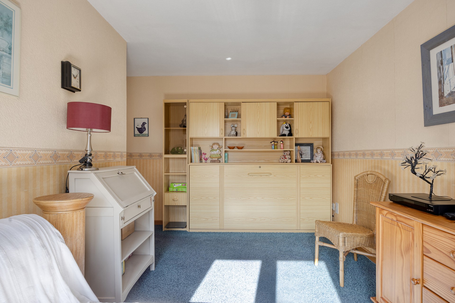 Via een vaste trap is de zolderverdieping bereikbaar. De overloop geeft toegang tot twee slaapkamers en twee praktische bergingen, waarvan één met de opstelling voor wasmachine en cv-ketel.