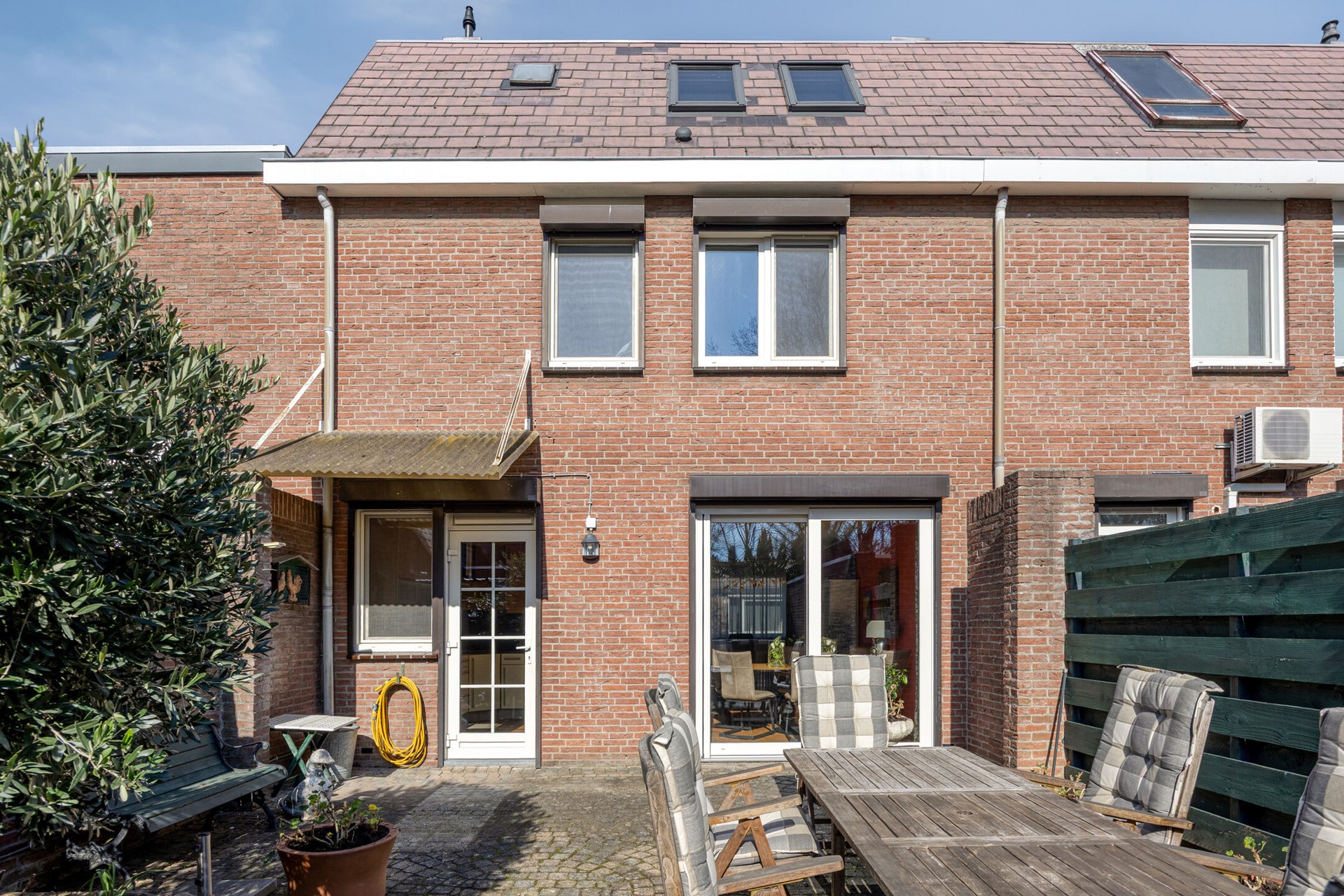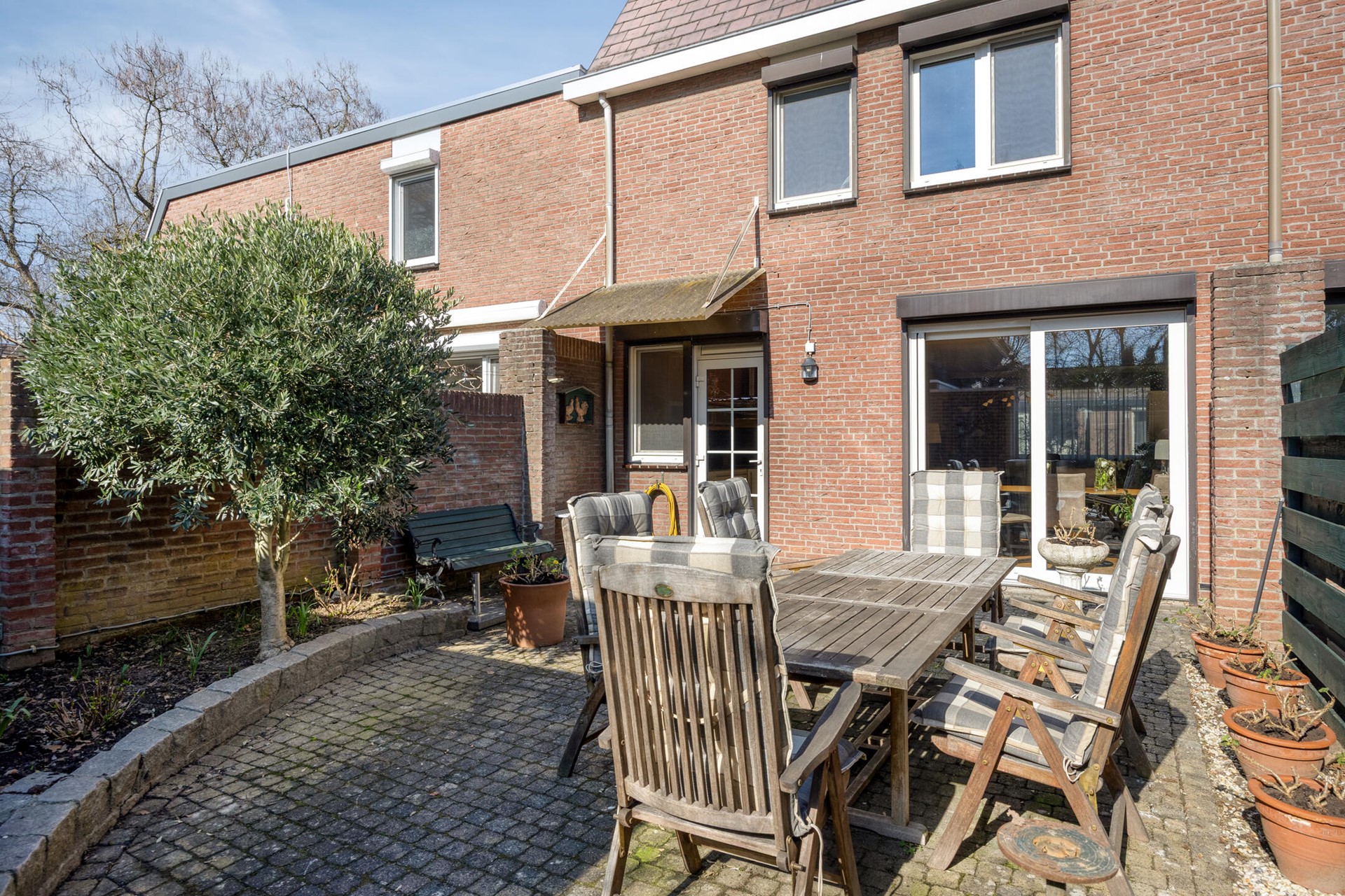 De rustiggelegen achtertuin is onderhoudsvriendelijk aangelegd met bestrating en een border met groen. Dankzij de omsloten ligging is hier veel privacy aanwezig. Het terras biedt voldoende ruimte voor een grote tuintafel en vormt een fijne plek om buiten te zitten.