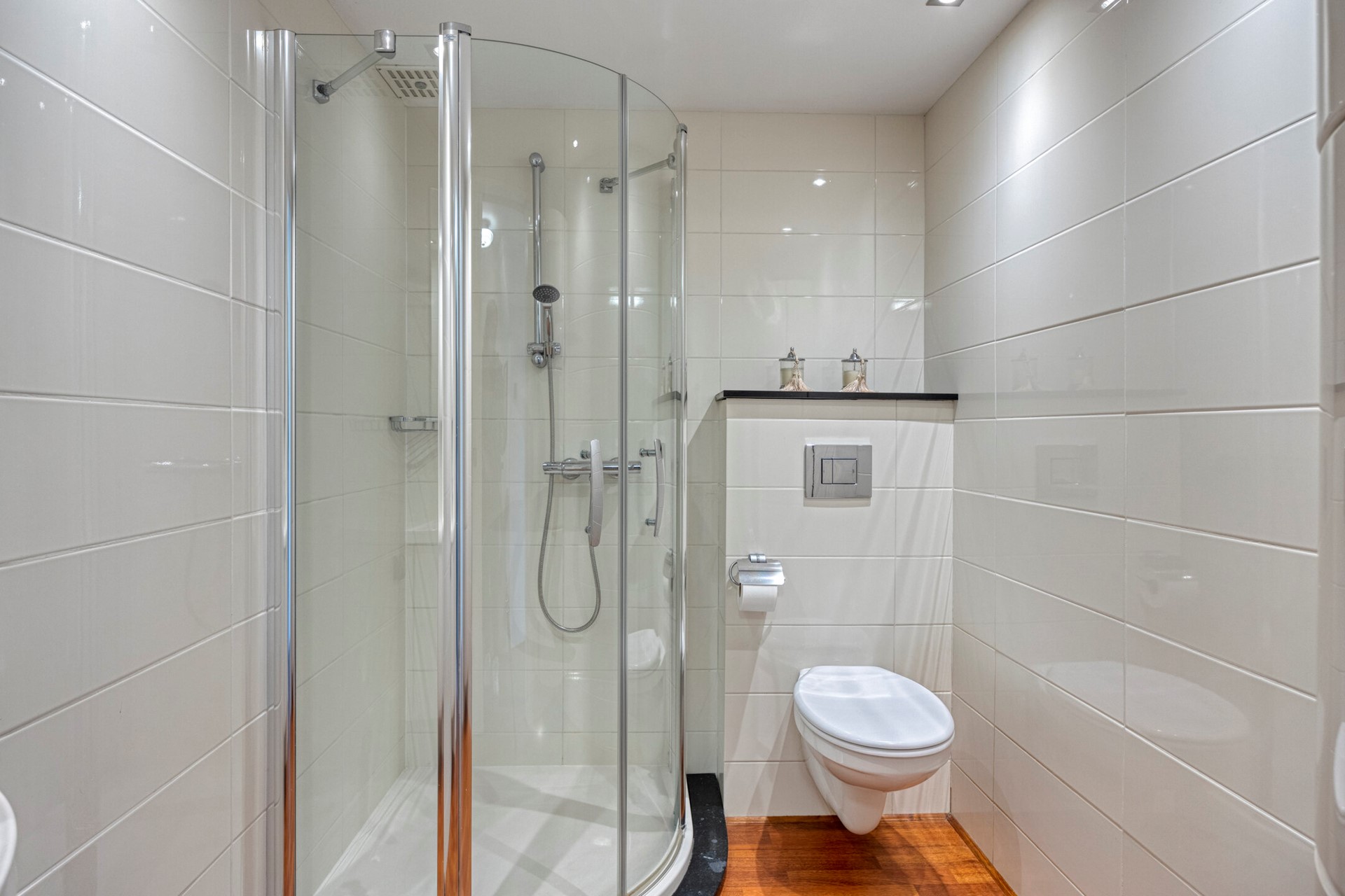 De eerste verdieping beschikt over twee slaapkamers en een badkamer met tweede toilet, douche en wastafel.