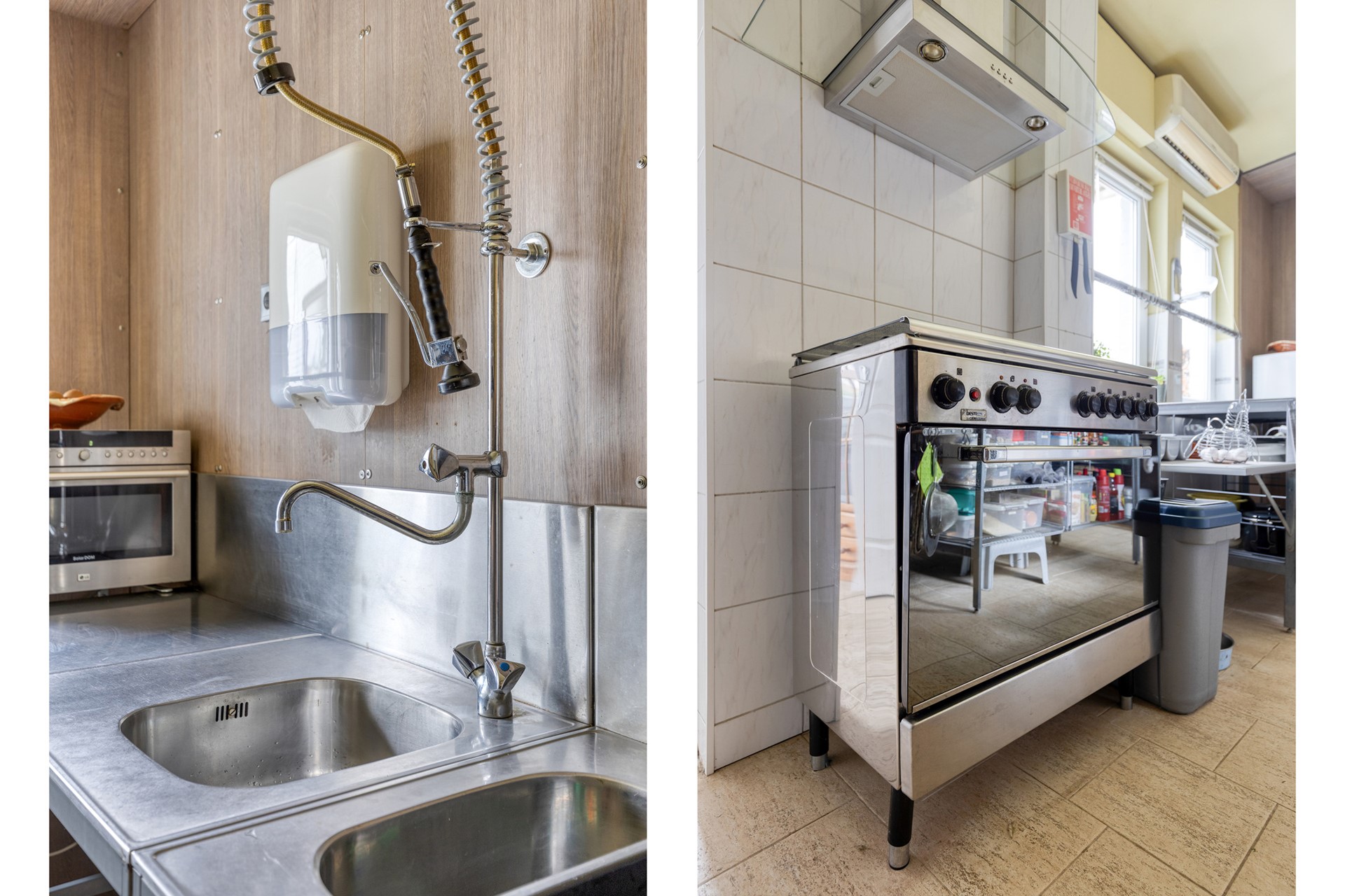 De uitbouw in het achterste deel van de begane grond is momenteel ingericht als keukenruimte en biedt volop mogelijkheden voor een nieuwe invulling. Hier kan een moderne woonkeuken worden gerealiseerd, passend bij hedendaagse woonwensen, maar ook een extra zitgedeelte of leefruimte behoort tot de mogelijkheden. De afmetingen en positionering maken dit deel van de woning bij uitstek geschikt voor een eigentijdse herindeling.