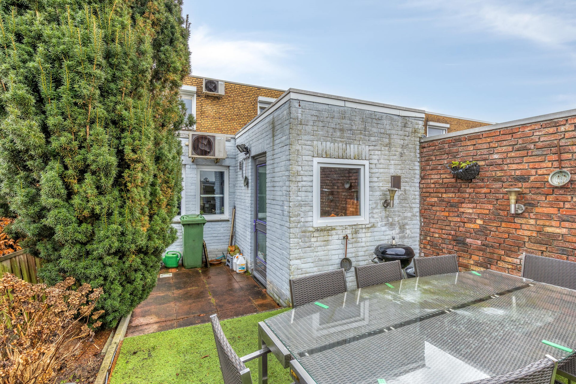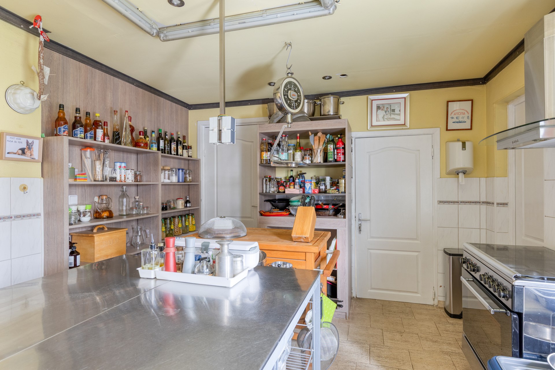 Aangrenzend bevindt zich de bijkeuken met witgoedaansluitingen en toegang tot de achtertuin, wat zorgt voor extra praktisch gemak.