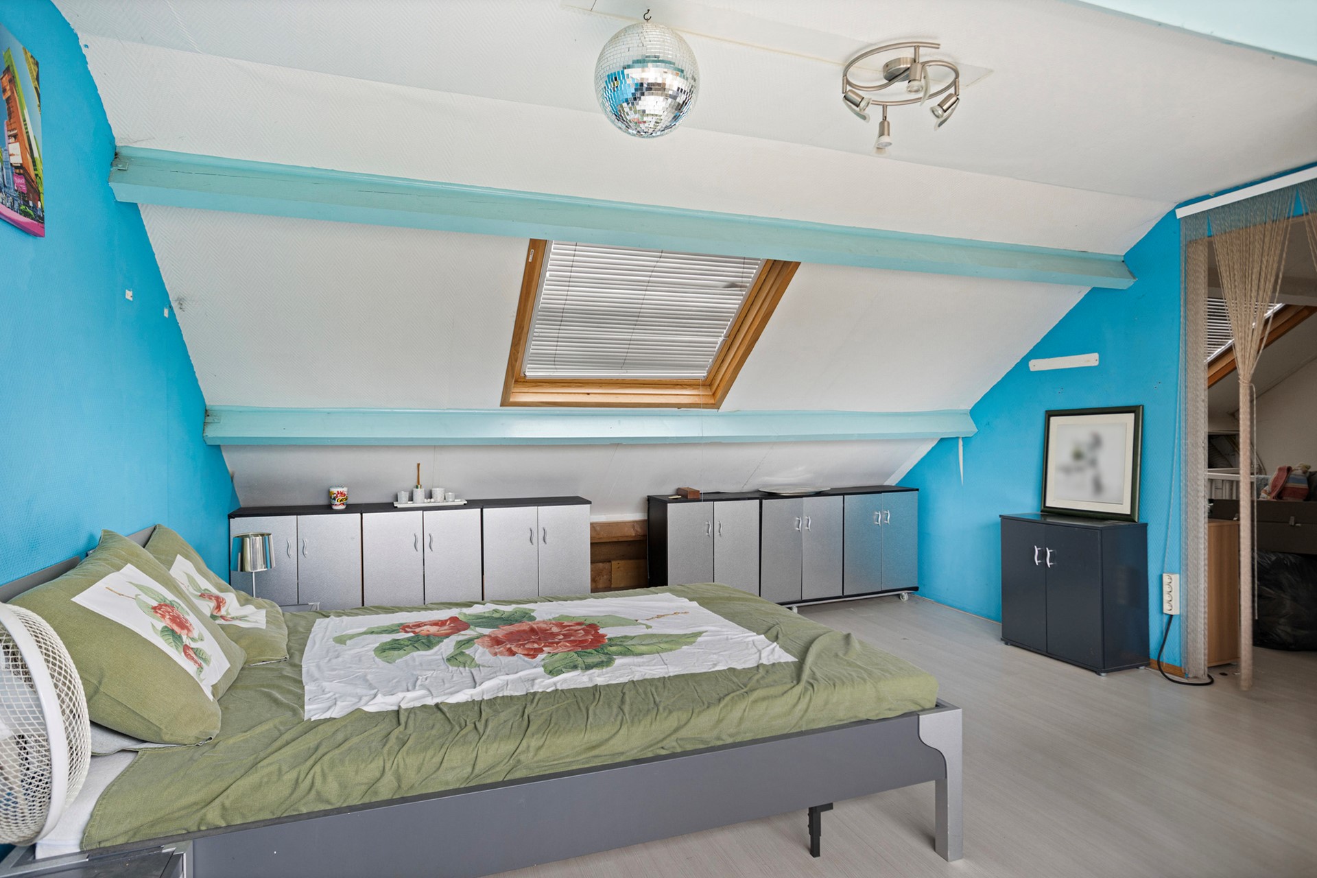 Via een vaste trap bereik je de zolderverdieping. Hier bevindt zich een ruime vierde slaapkamer met dakraam en praktische bergruimte achter de knieschotten. Ideaal als extra slaapkamer, werkplek of hobbyruimte.