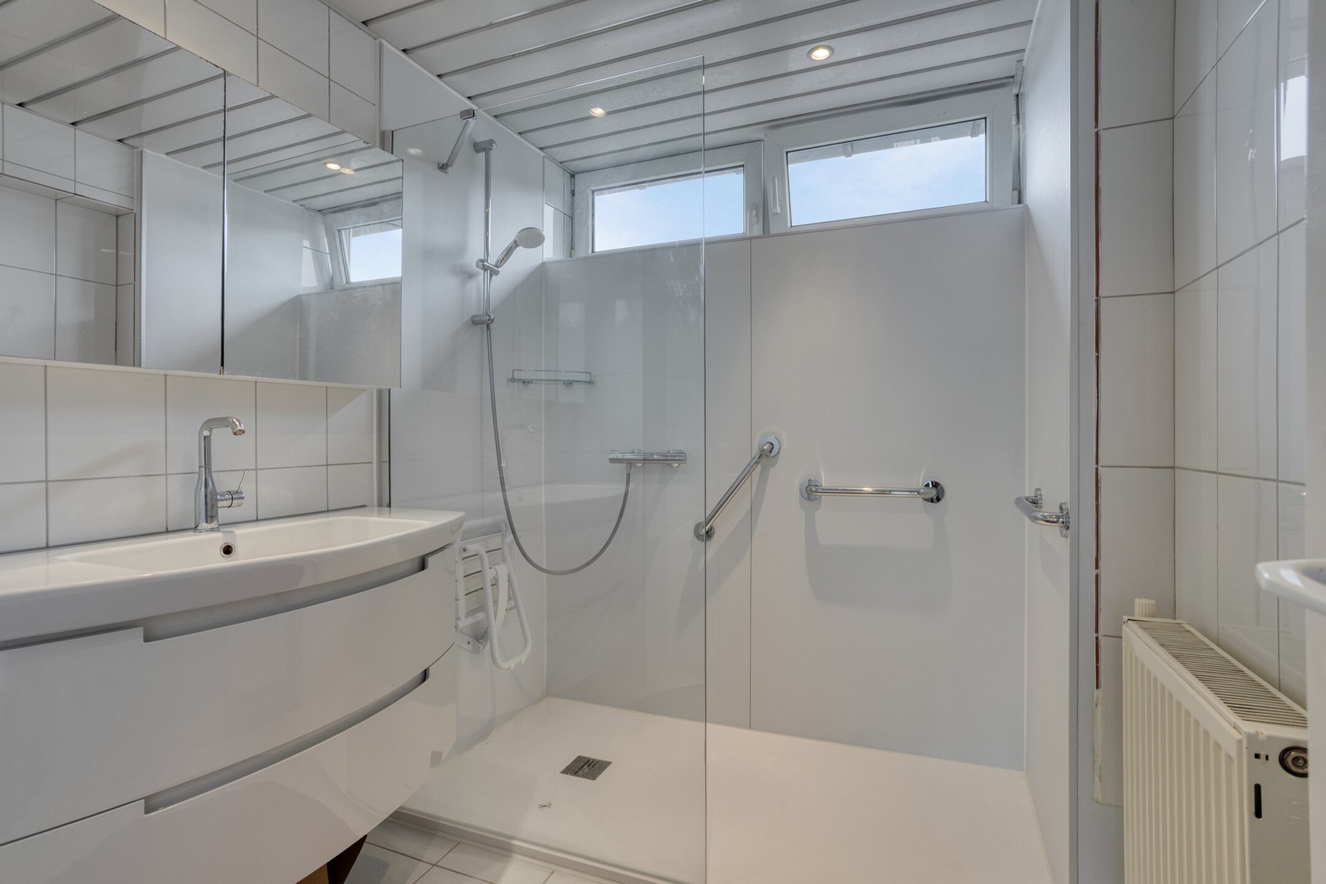 De overloop geeft toegang tot drie ruime slaapkamers en de badkamer. De slaapkamers (circa 14, 13 en 7 m²) zijn goed van formaat en licht dankzij de grote ramen. De badkamer is modern uitgevoerd met een inloopdouche en wastafelmeubel.