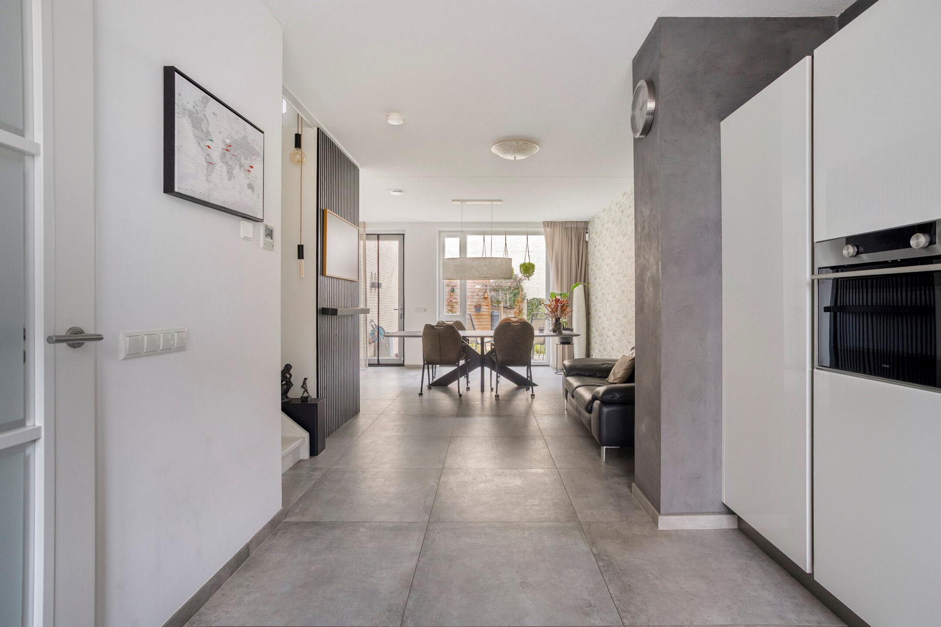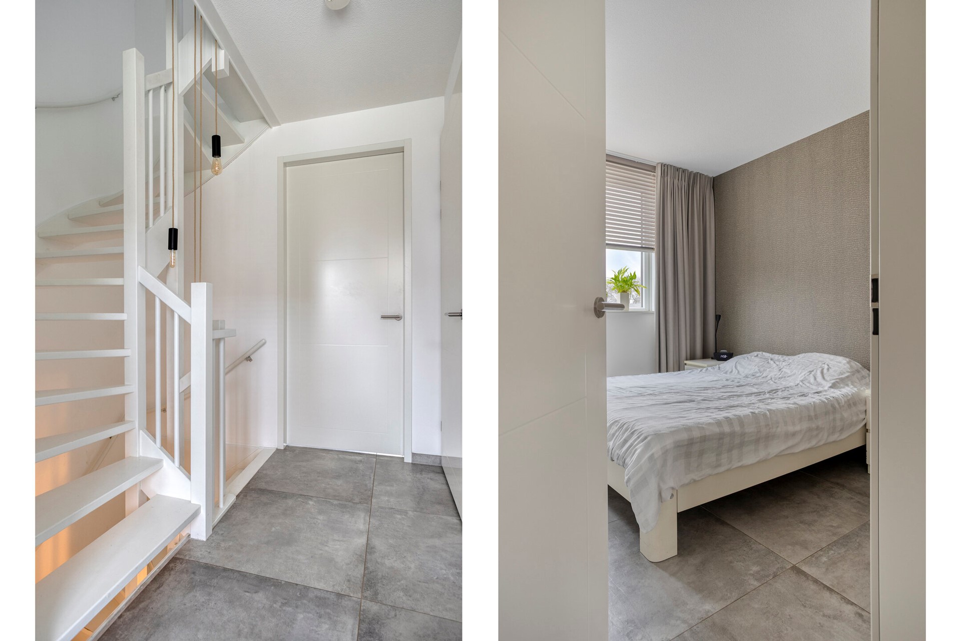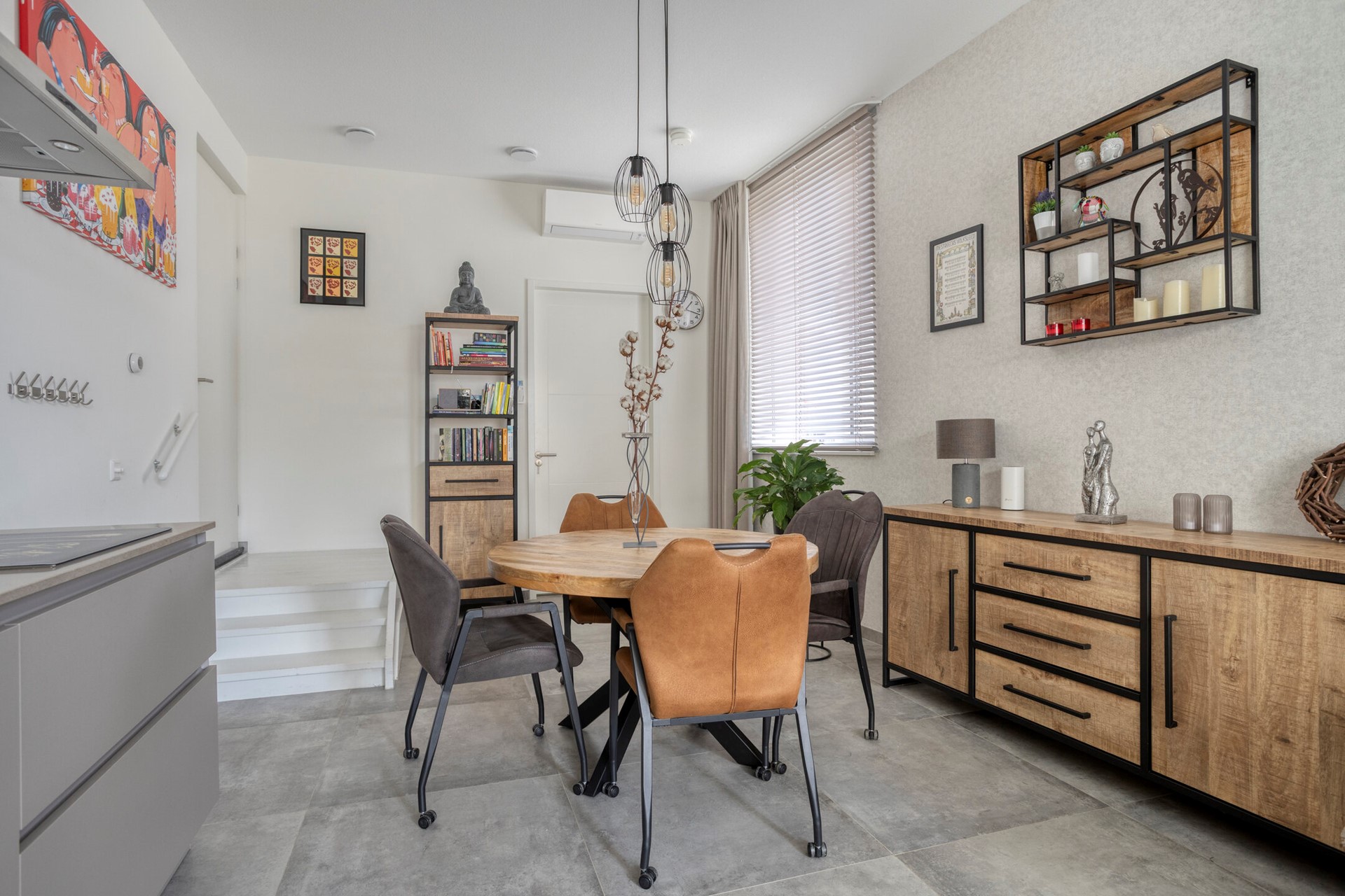 De begane grond vormt een prettig en logisch ingedeeld woonniveau. De keuken is strak vormgegeven, volledig uitgerust met moderne inbouwapparatuur en sluit mooi aan op het eetgedeelte en de woonkamer. De ruimtes voelen comfortabel en overzichtelijk aan en lenen zich uitstekend voor dagelijks gezinsleven en ontspannen samenzijn.