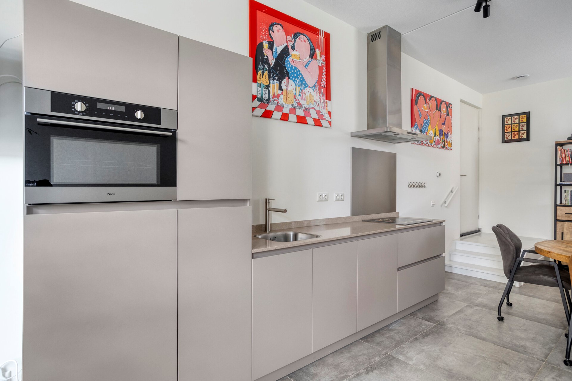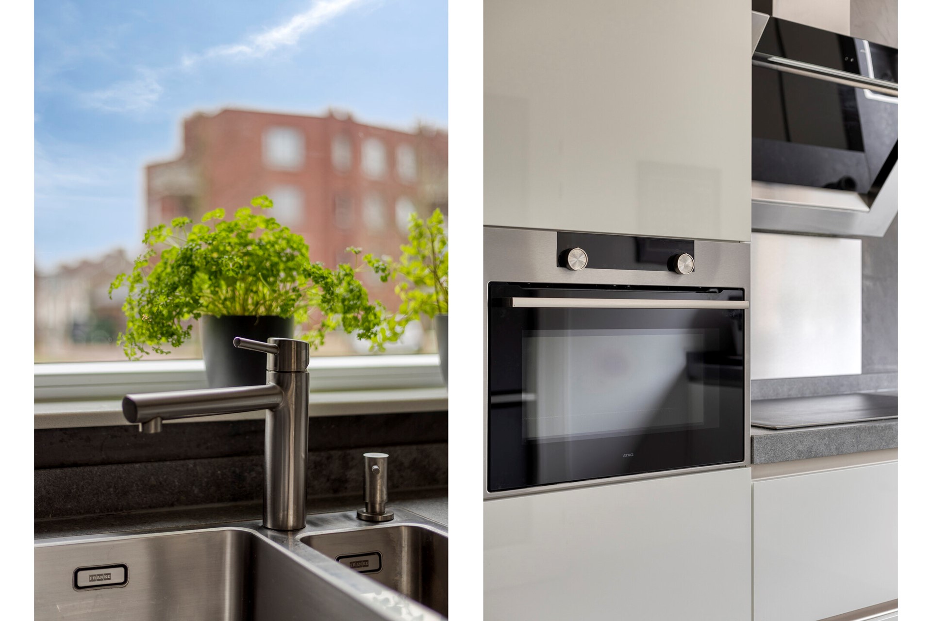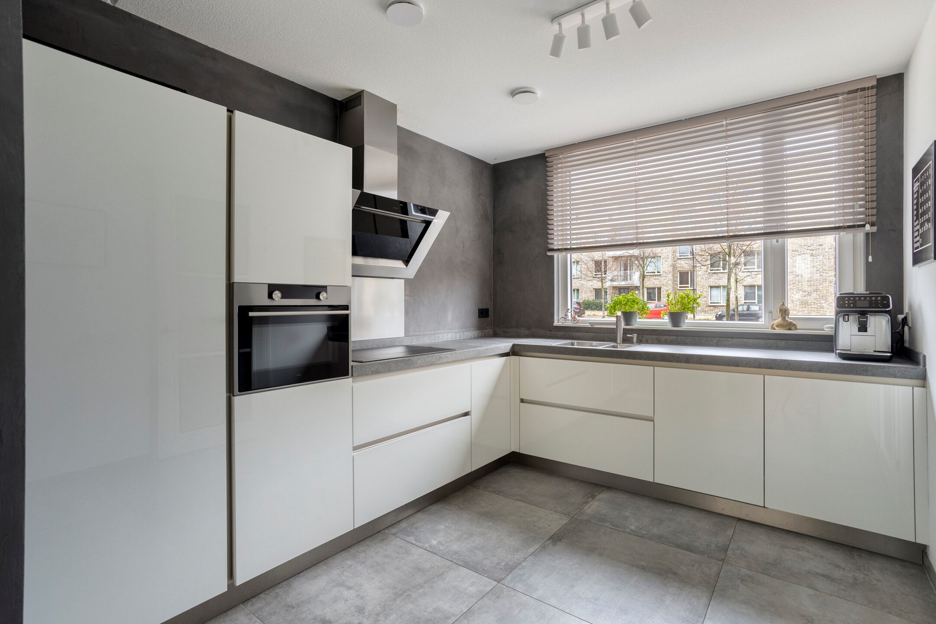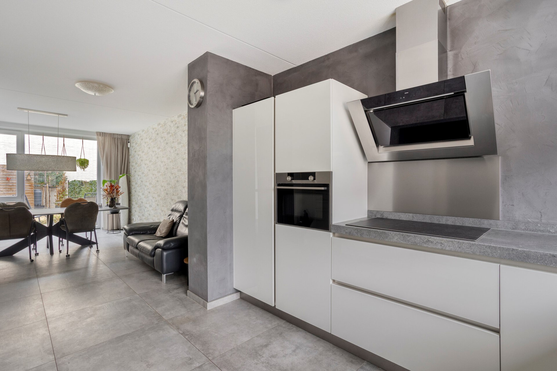 De begane grond vormt een prettig en logisch ingedeeld woonniveau. De keuken is strak vormgegeven, volledig uitgerust met moderne inbouwapparatuur en sluit mooi aan op het eetgedeelte en de woonkamer. De ruimtes voelen comfortabel en overzichtelijk aan en lenen zich uitstekend voor dagelijks gezinsleven en ontspannen samenzijn.