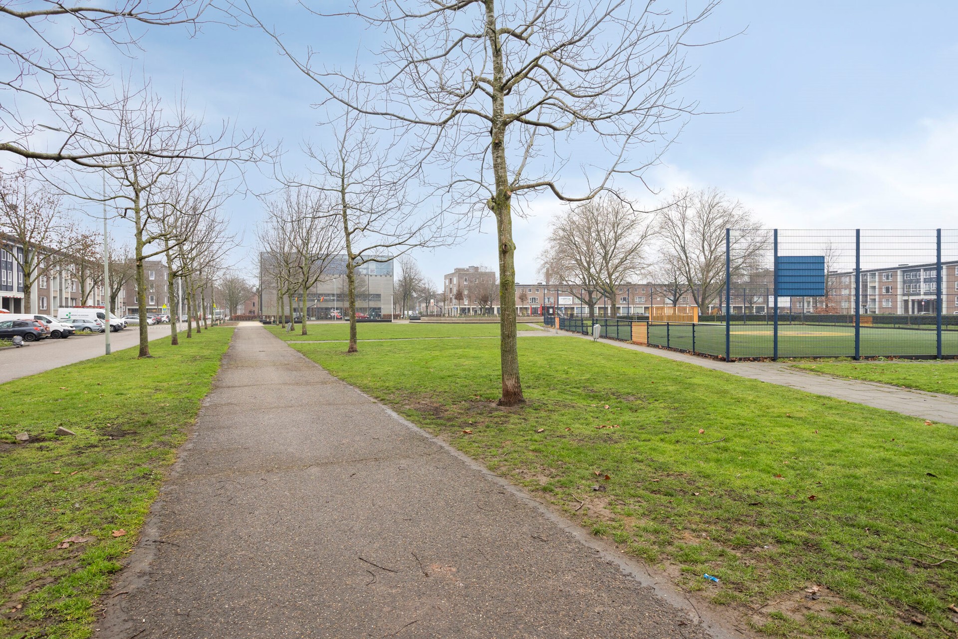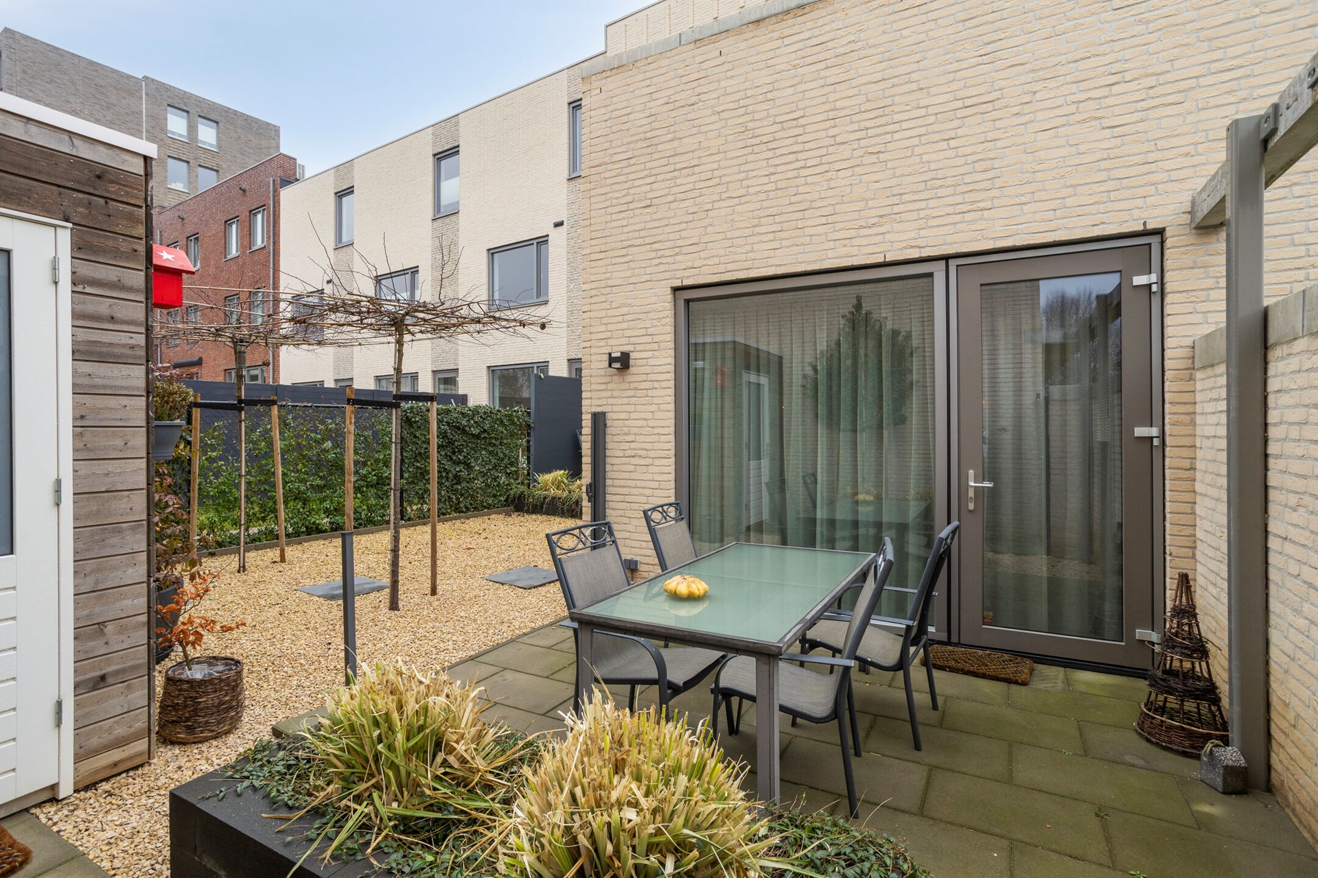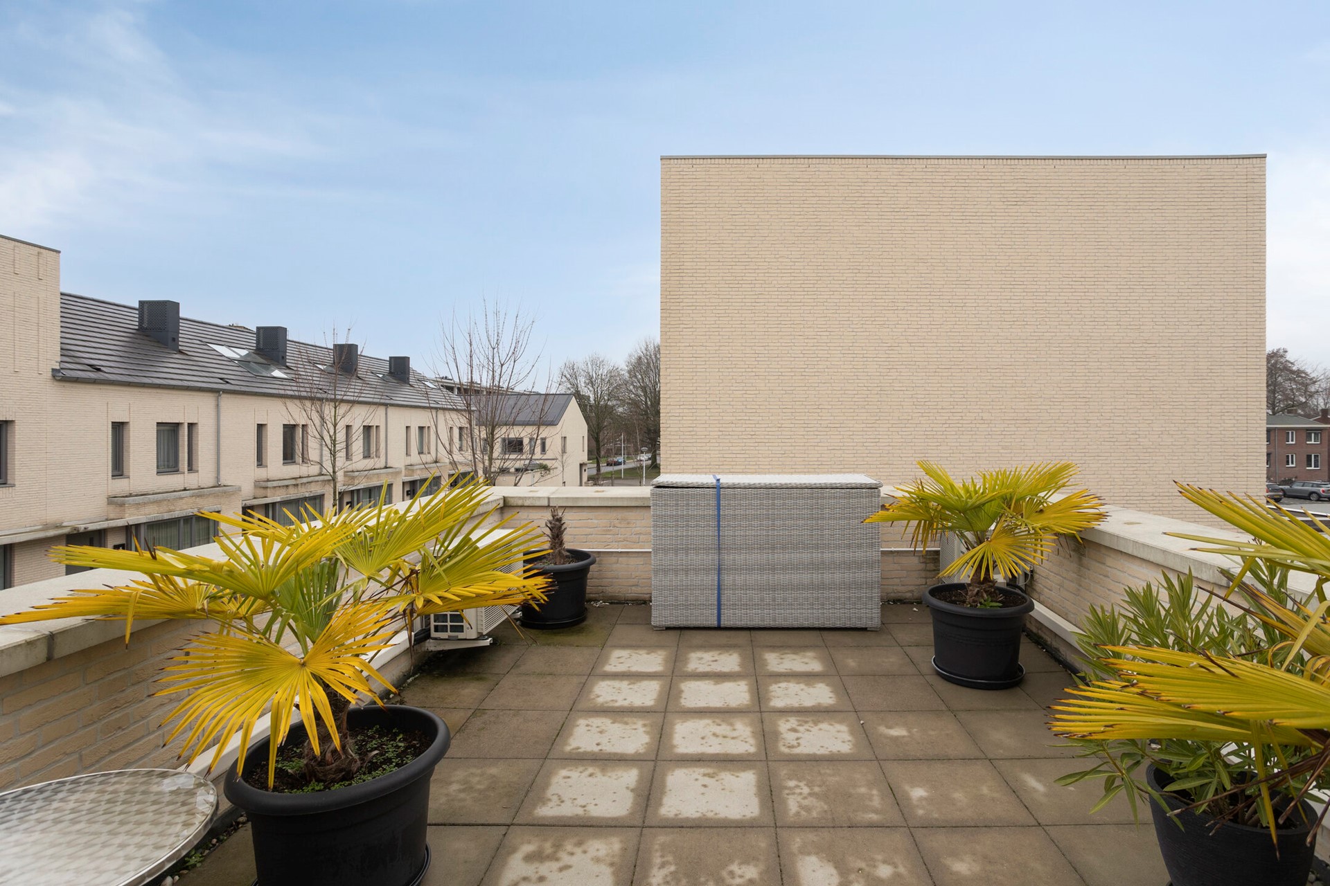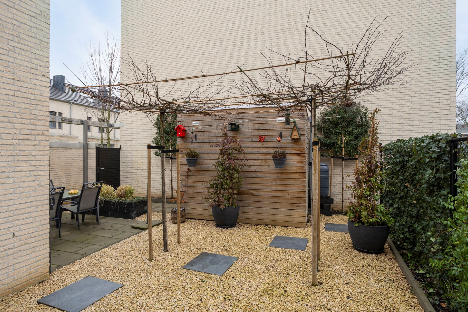 Een letterlijk absoluut hoogtepunt is het royale dakterras van ruim 60 m², gelegen op het zuidwesten en met uitzicht over de Groene Loper. Een heerlijke plek om te ontspannen, buiten te eten of simpelweg te genieten van zon, ruimte en groen. Daarnaast beschikt de woning over een verzorgde tuin met achterom en een eigen parkeerplaats op afsluitbaar terrein aan de achterzijde. Ook een praktische buitenberging ontbreekt niet.