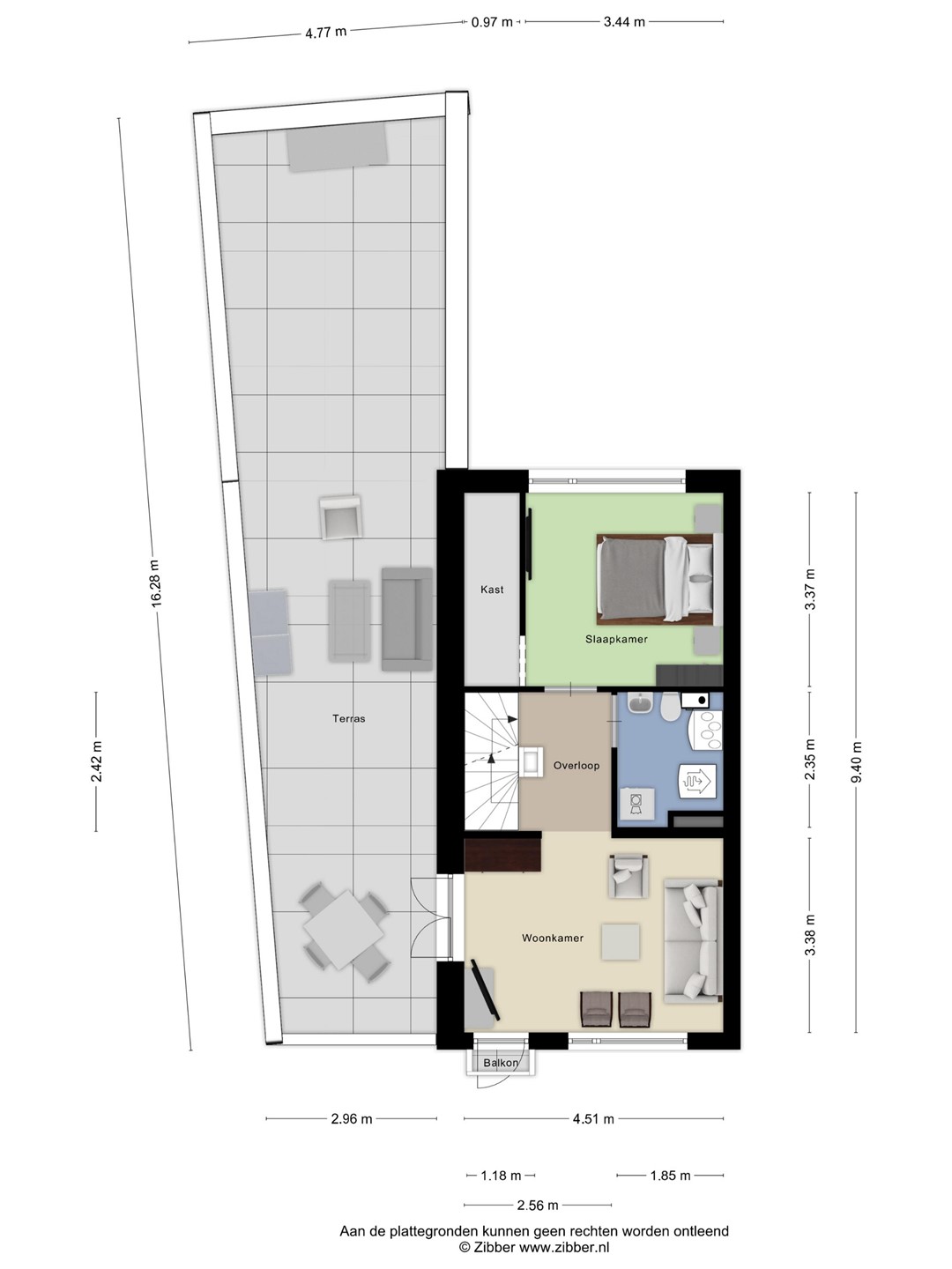 • Groot dakterras van circa 60 m² op het zuidwesten