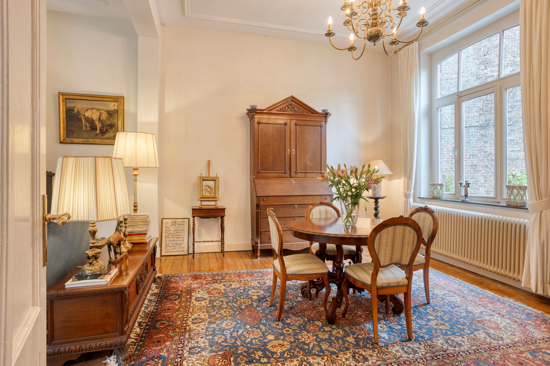 Aan de lommerrijke Victor de Stuersstraat, op een steenworp van het stadspark en het historisch centrum, ligt deze indrukwekkende stadsvilla uit 1916. Vanuit de woning kijk je uit op de iconische Lambertuskerk, een stukje Maastrichtse historie dat het straatbeeld zijn ziel geeft. Met een woonoppervlakte van circa 228 m², hoge plafonds, sierlijke ornamenten en verfijnde details ademt dit huis de sfeer van een vervlogen tijd, gecombineerd met het comfort van vandaag. De woning beschikt o.a. over vier slaapkamers en twee badkamers, vloerverwarming op de begane grond (gang, bijkeuken en toilet), houten kozijnen met HR++ beglazing en energielabel C. Hoewel er geen buitenruimte is op de begane grond, bieden twee royale dakterrassen op de verdiepingen (ca. 21 m² en ca. 14 m²) heerlijke plekken om van zon, rust en privacy te genieten. De ligging binnen het beschermd stadsgezicht van Maastricht onderstreept het bijzondere karakter van deze stadsvilla.