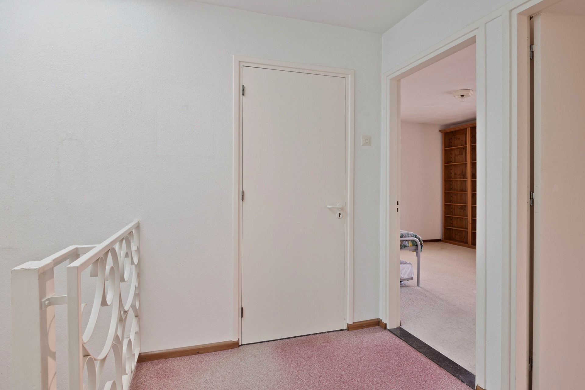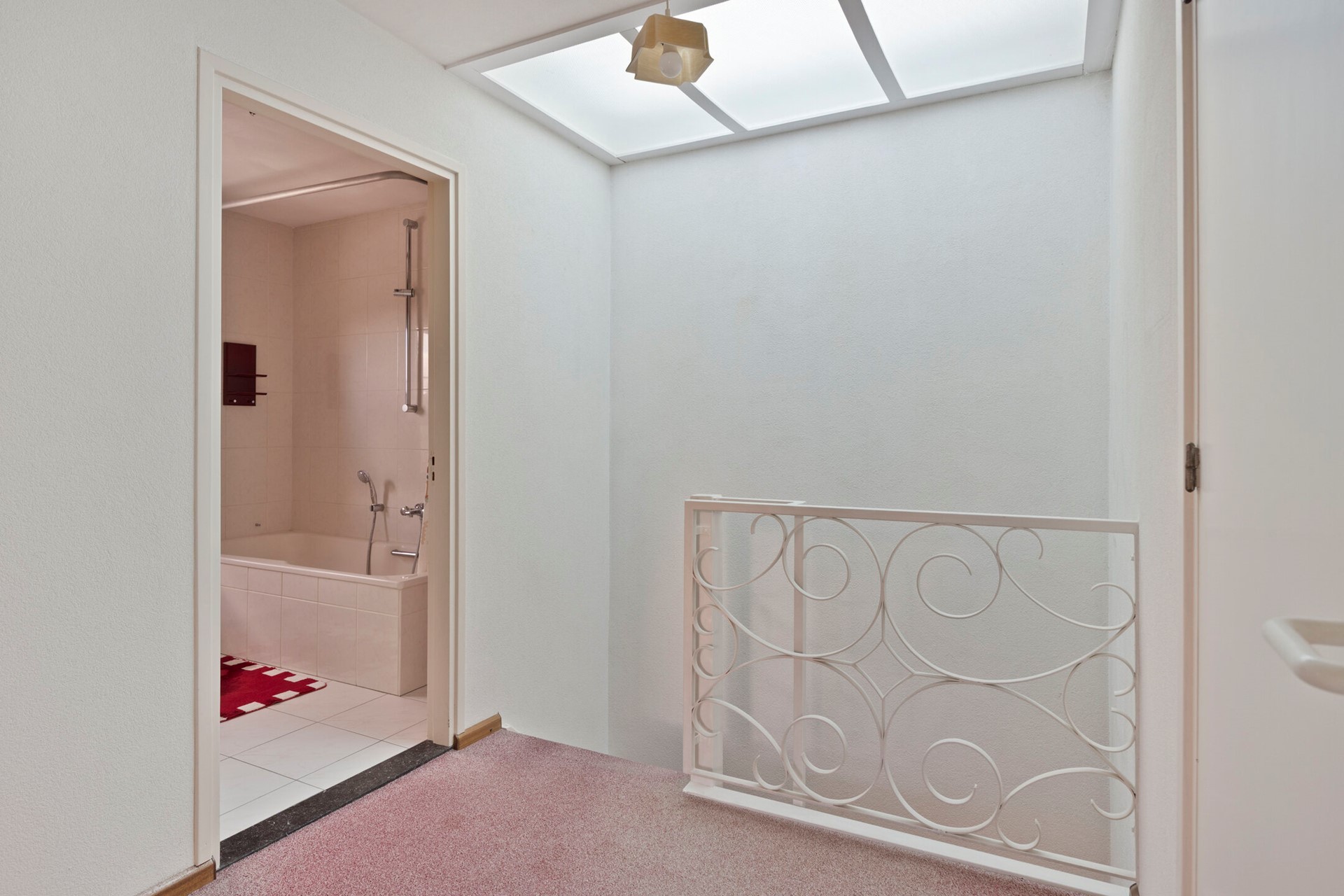 Overloop met toegang tot drie slaapkamers en de badkamer.