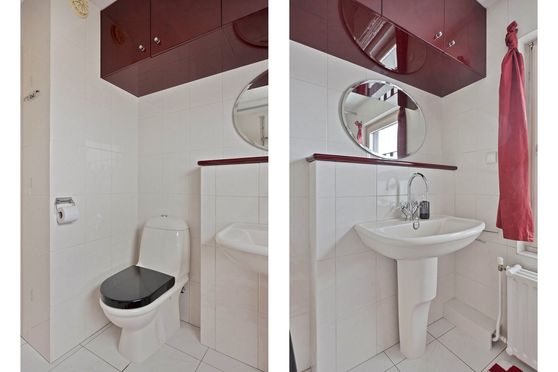 De badkamer is functioneel uitgevoerd met ligbad, wastafel en tweede toilet.