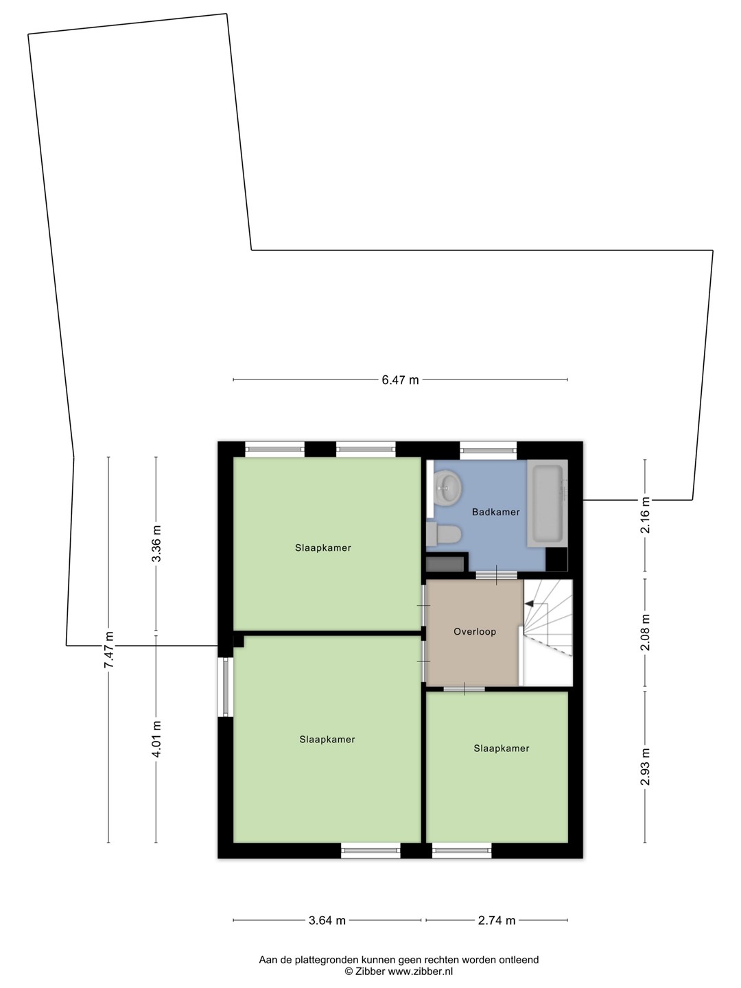 - Drie slaapkamers van circa 8 m², 12 m² en 15 m²
