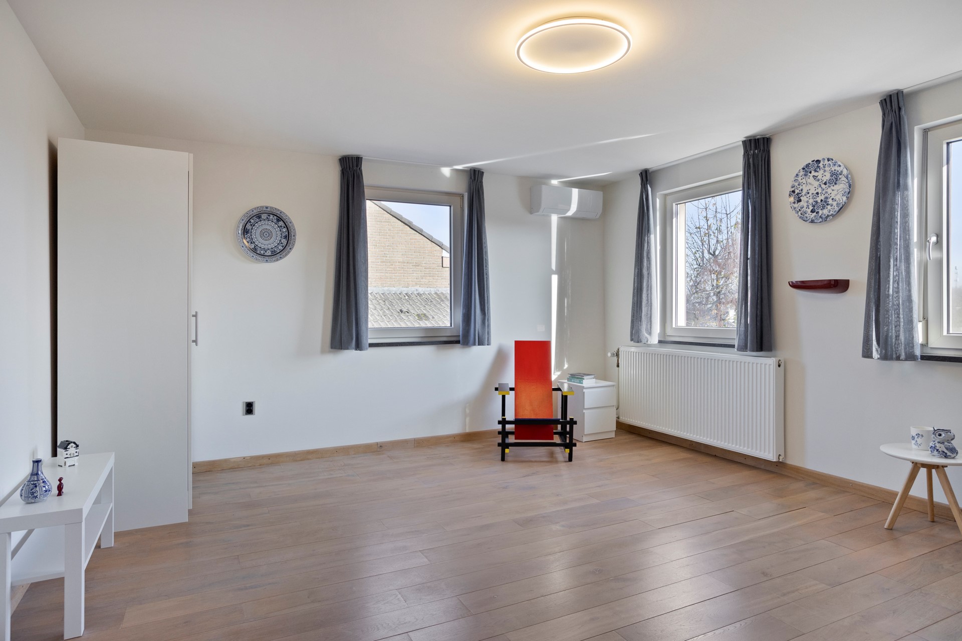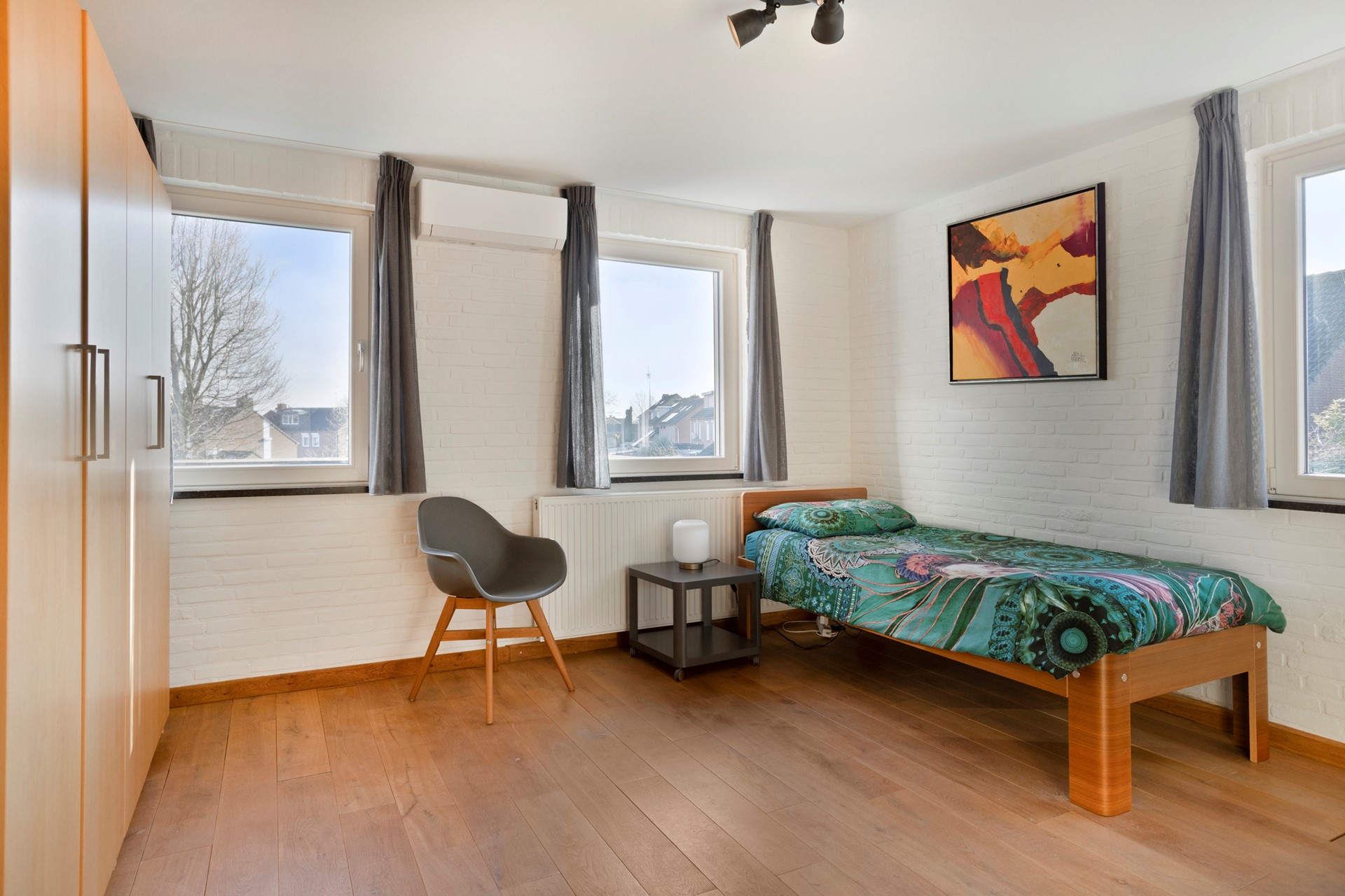 De verdieping beschikt over drie ruime slaapkamers van circa 18, 22 en 23 m². Ze zijn licht en praktisch in te richten en bieden elk hun eigen pluspunten: twee slaapkamers hebben ingebouwde kledingkasten, de derde beschikt over een eigen wastafel. Alle slaapkamers zijn uitgerust met een parketvloer en een airco-unit.