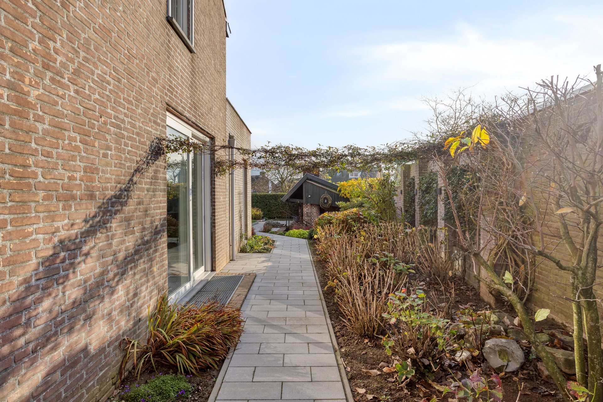De fraai aangelegde en privacyrijke tuin loopt volledig rondom de woning en biedt veel privacy. Aan de achterzijde liggen meerdere, royaal bemeten terrassen met moderne keramische tegels. Strakke borders, volwassen beplanting en een verzorgd gazon zorgen voor een sfeervolle en onderhoudsvriendelijke buitenruimte.