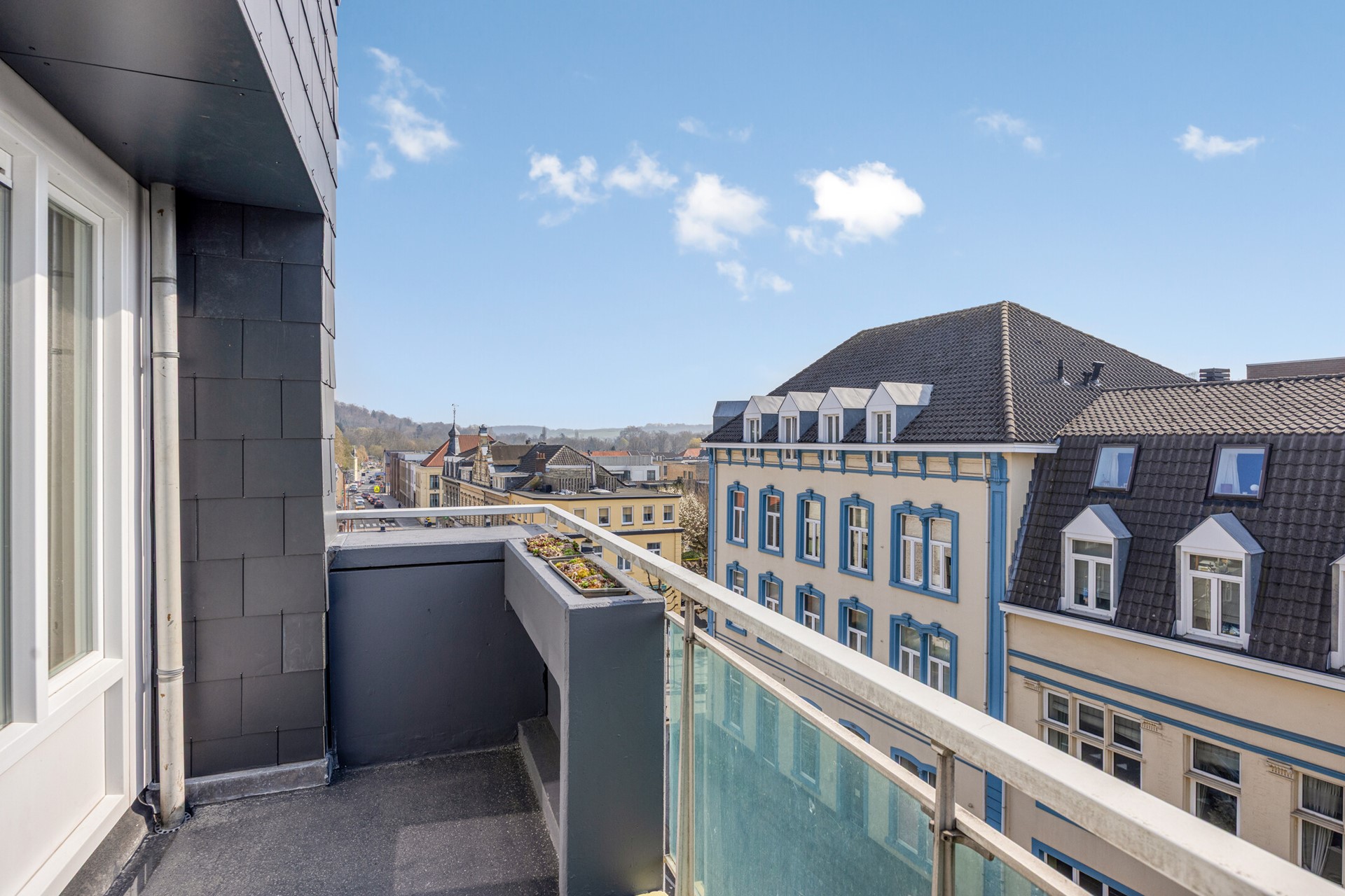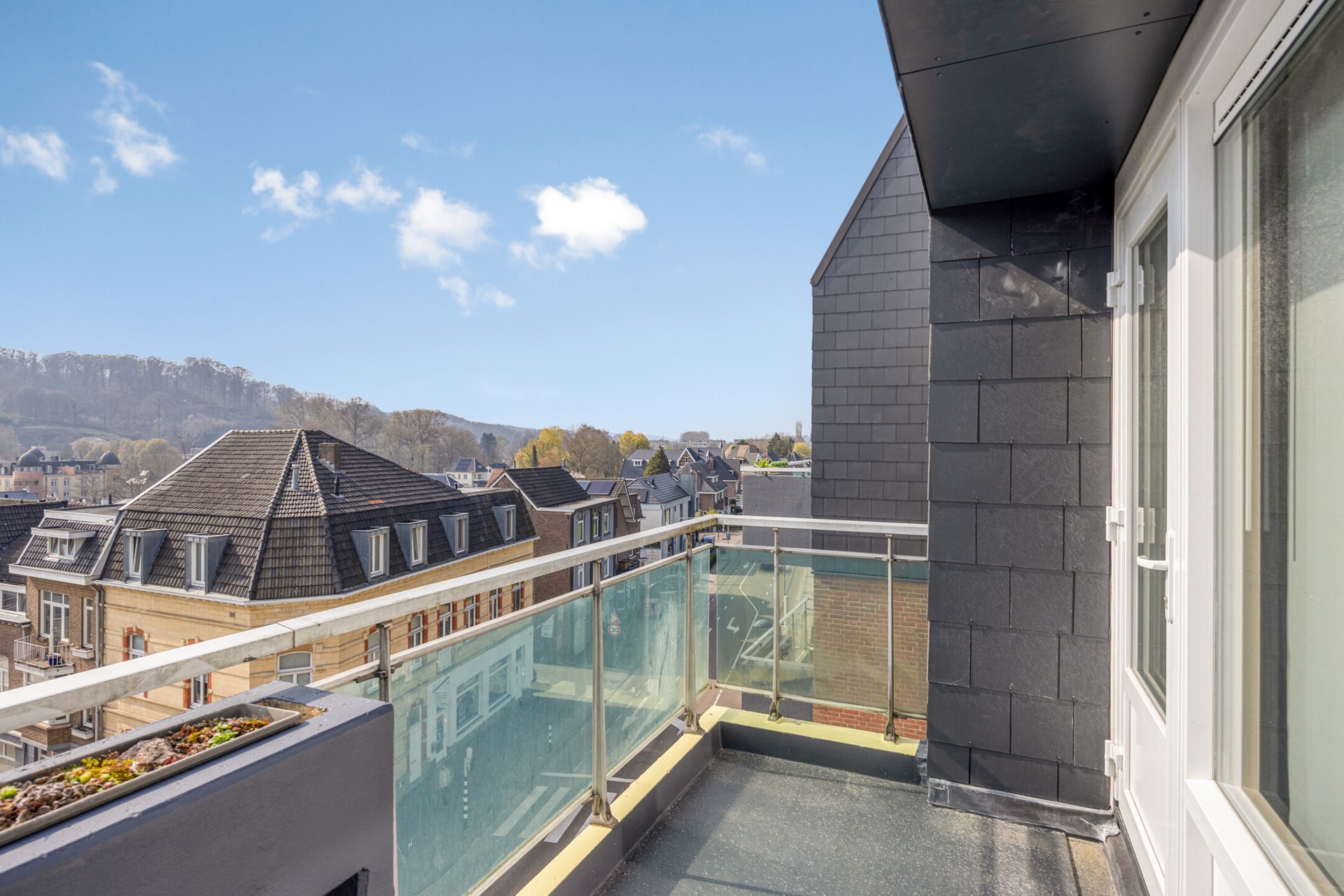 Zodra je de woonkamer binnenstapt valt het direct op: licht, ruimte en uitzicht. De erker en grote raampartijen zorgen niet alleen voor veel daglicht, maar trekken het uitzicht als het ware naar binnen. Zowel vanuit de woonkamer als vanaf het balkon ervaar je dat heerlijke, weidse gevoel over Valkenburg en het omliggende heuvellandschap.